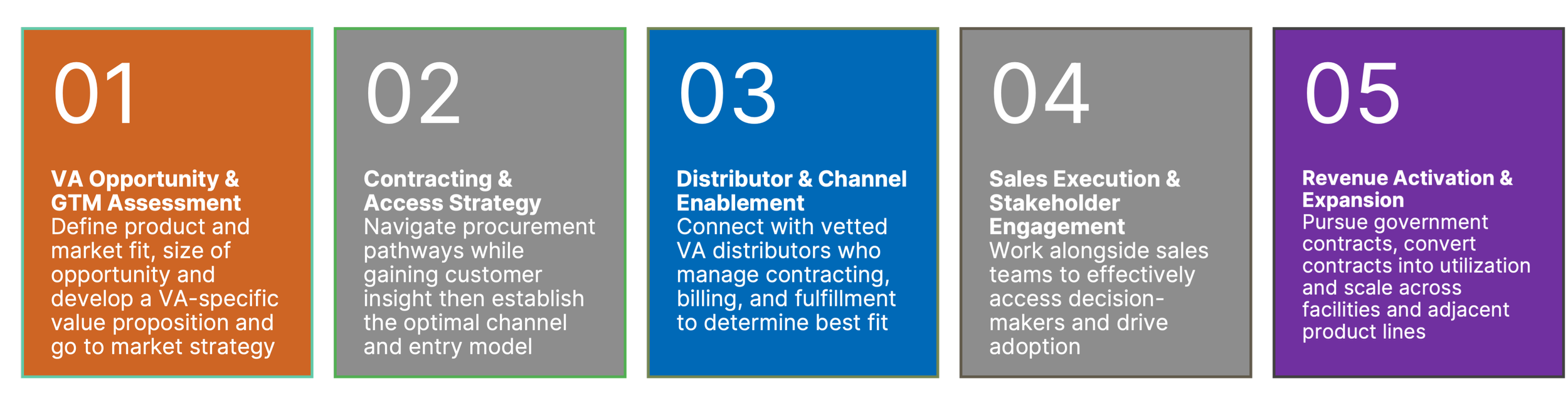 Excelerant delivers a structured, end-to-end Government commercialization pathway that de-risks VA entry and accelerates time to revenue.